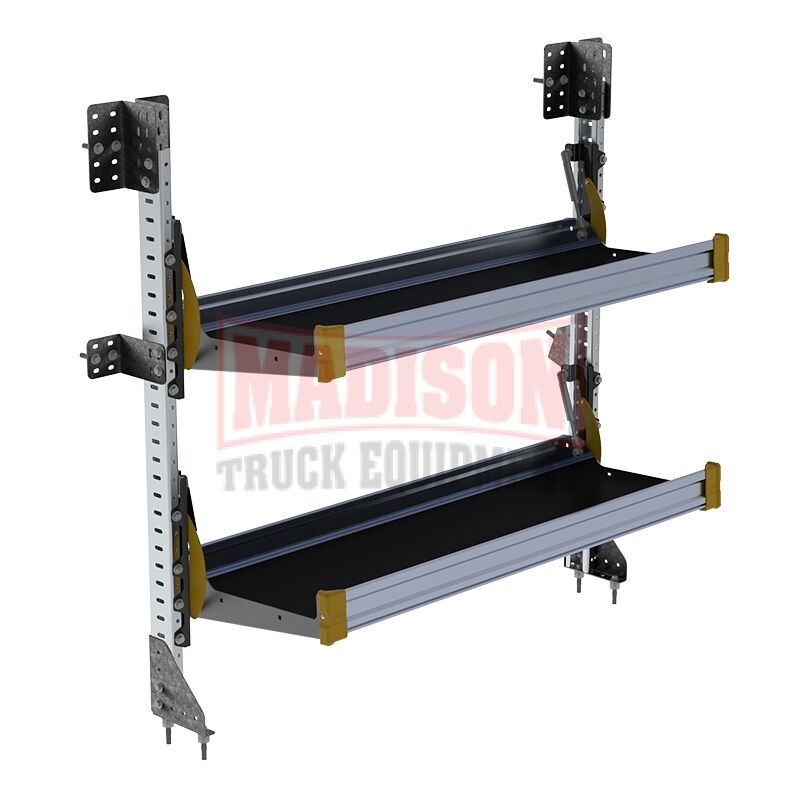 Fold-Away cargo van foldable shelving system with 2 levels, 22″d x 51″h x 48″w