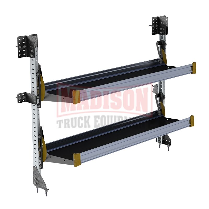 Fold-Away cargo van foldable shelving system with 2 levels, 22″d x 51″h x 60″w