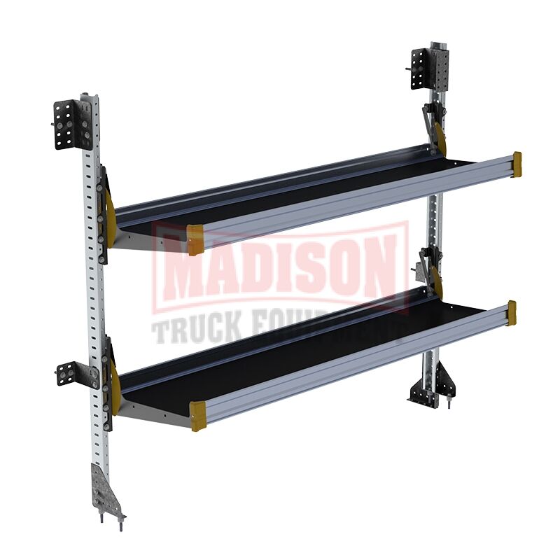 Fold-Away cargo van foldable shelving system with 2 levels, 22″d x 65″h x 72″w