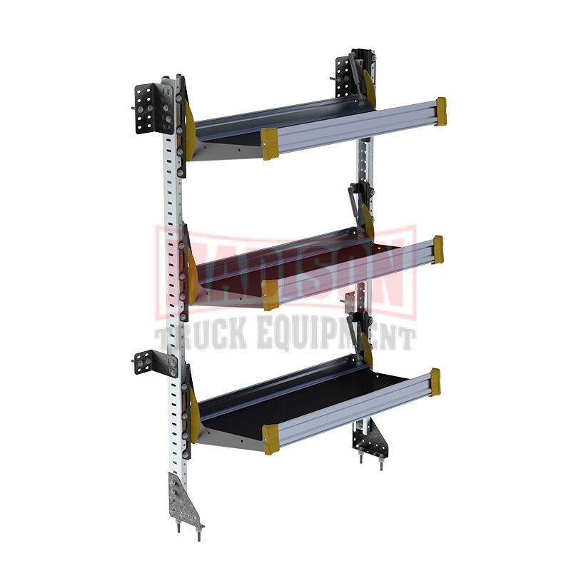 Fold-Away cargo van foldable shelving system with 3 levels, 22″d x 65″h x 36″w